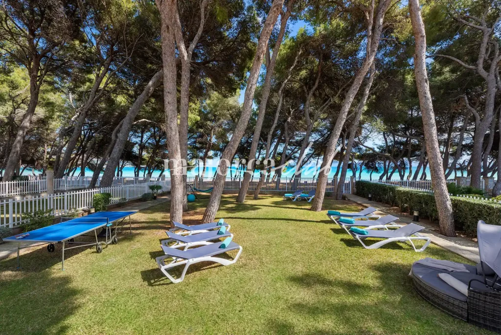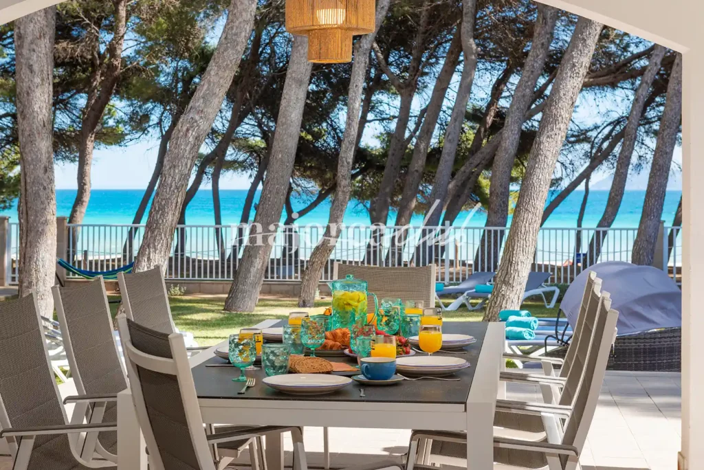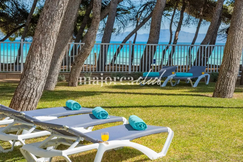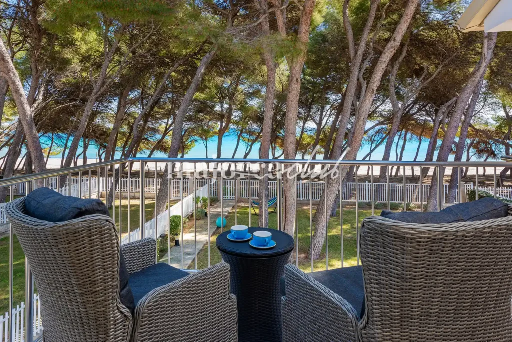 Discover the charm of Villa Voramar, a serene haven right on the edge of Alcúdia's stunning beach. This villa, surrounded by whispering pine trees, offers a picturesque escape with its white sandy beach and turquoise waters just steps away.